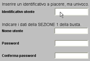 4. Digitare il vostro nome o qualunque altro identificativo sul campo Identificativo utente. Inserire nelle caselle sottostante i dati della SEZIONE 1 della busta.