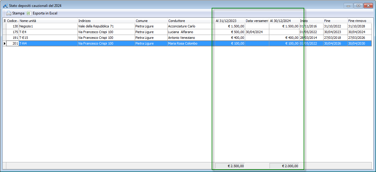 - Interessi sul deposito cauzionale da accreditare all'inquilino